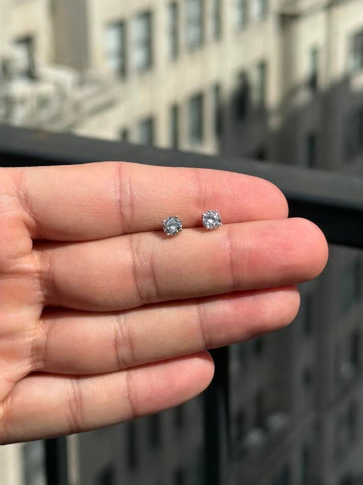 1 CTW Natural VS1 Diamond Stud 14k White Gold